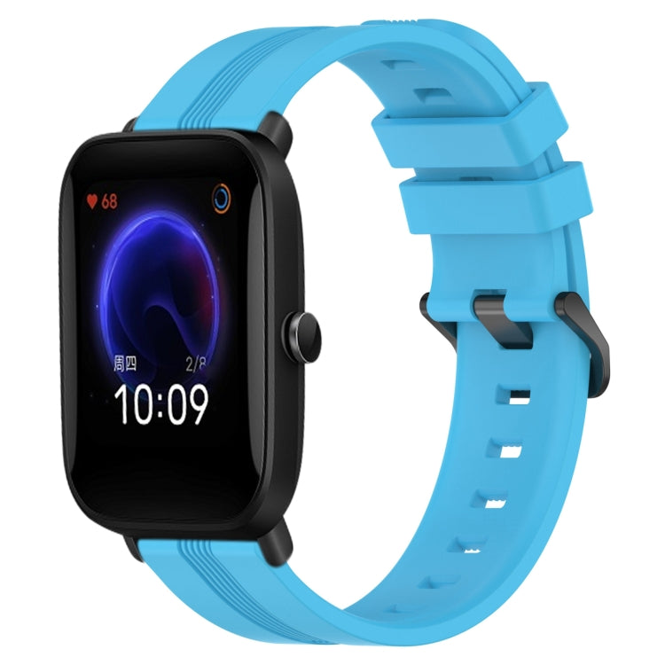 Banda de Reloj Silicona para Amazfit Pop 20mm con Rayas Cóncavas (Azul Cielo)