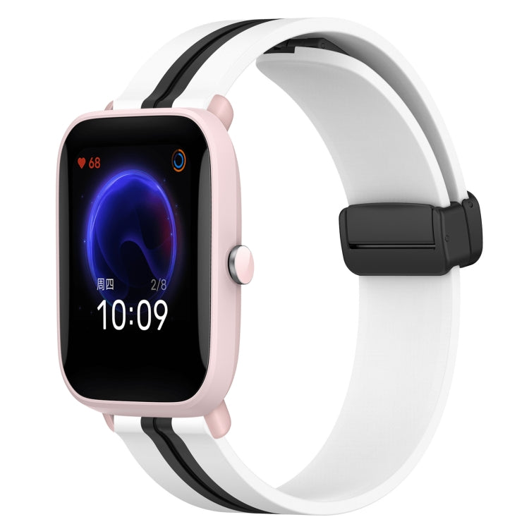 Correa de Reloj para Amazfit Pop Pro 20mm Silicona con Cierre Magnético Plegable (Blanco + Negro)