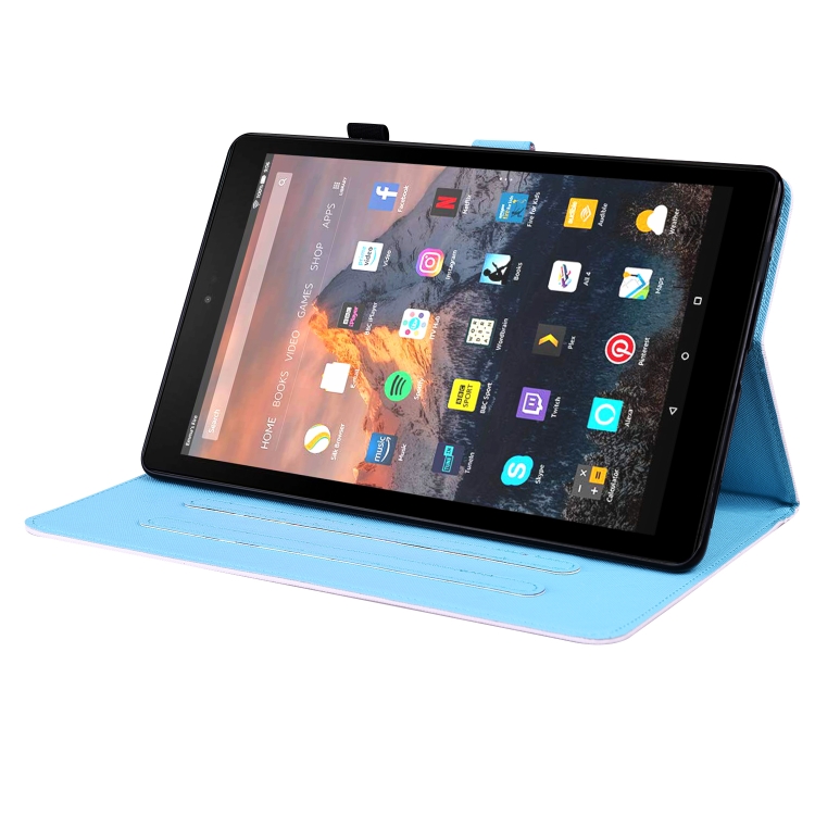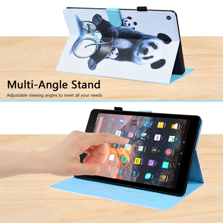 Funda de Cuero para Amazon Fire HD 8 (2015/2016/2017/2018) Soporte Ranuras Tarjetas Función Marco Sueño (Panda en Bicicleta)