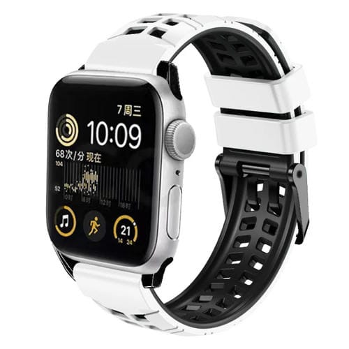 Correa de Silicona para Apple Watch 5 44mm con Hebilla Doble Fila de Sarga (Blanco Negro)