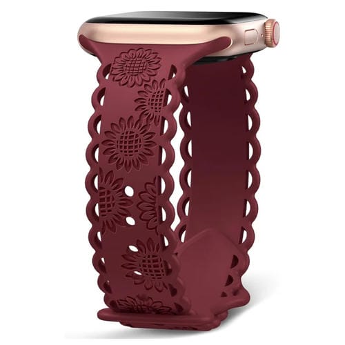 Correa de Silicona para Apple Watch Series 5 44mm con Relieve de Girasol (Rojo Vino)