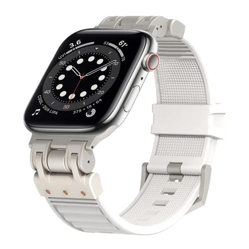 Correa de Silicona para Apple Watch Series 6 44mm a Cuadros Mecha de Metal (Blanco)