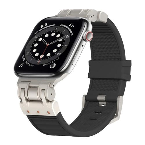 Correa de Silicona para Apple Watch Series 6 44mm a Cuadros Mecha de Metal (Negro)