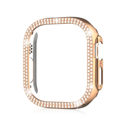 Caja de Reloj para Apple Watch Ultra 49mm de PC con Doble Fila Diamond Hollow (Oro Rosa)