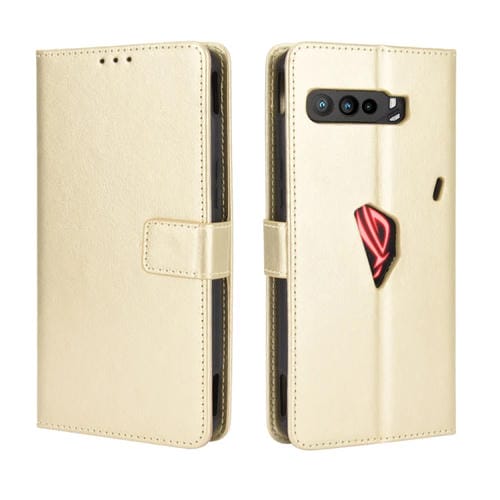 Funda de Cuero para Asus Rog Phone 3 Zs661Ks con Tapa Horizontal, Soporte, Ranuras y Marco de Fotos (Dorado)