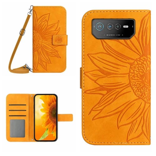 Funda de Cuero Flip para Asus Rog Phone 6 con Cordón y Skin Feel Sun Flower (Amarillo)
