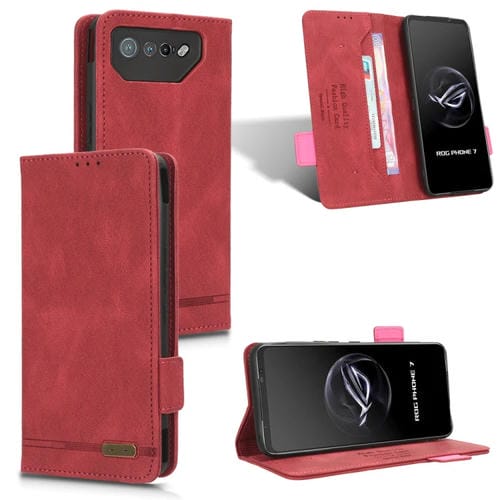 Funda de Cuero para Asus Rog Phone 7 con Cierre Magnético (Rojo)