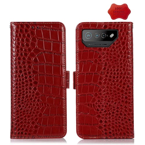 Funda de Teléfono Asus Rog Phone 7 Cuero de Vaca Capa Superior Cocodrilo (Rojo)