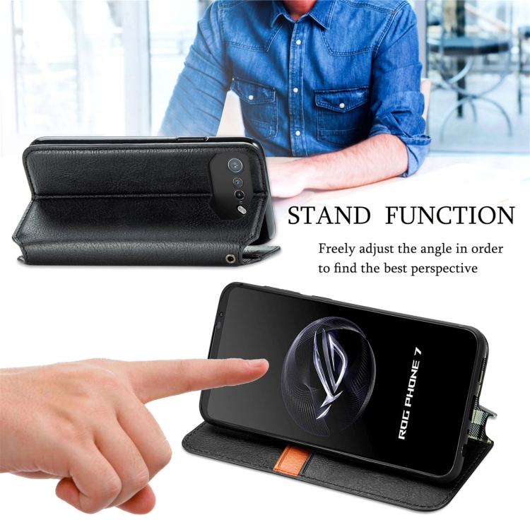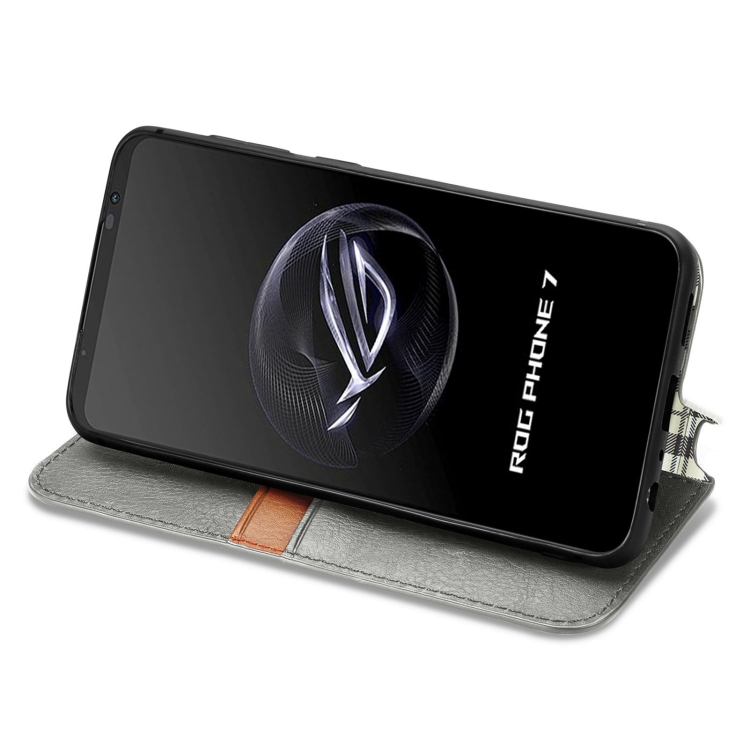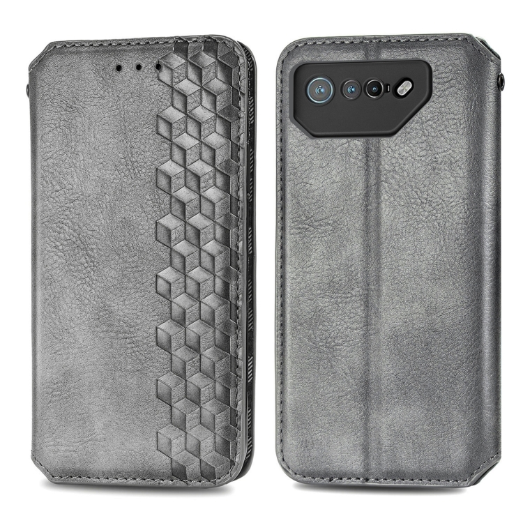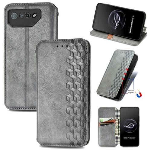 Funda para Asus Rog Phone 7 de Cuero Magnético Prensado con Rejilla Cúbica (Gris)