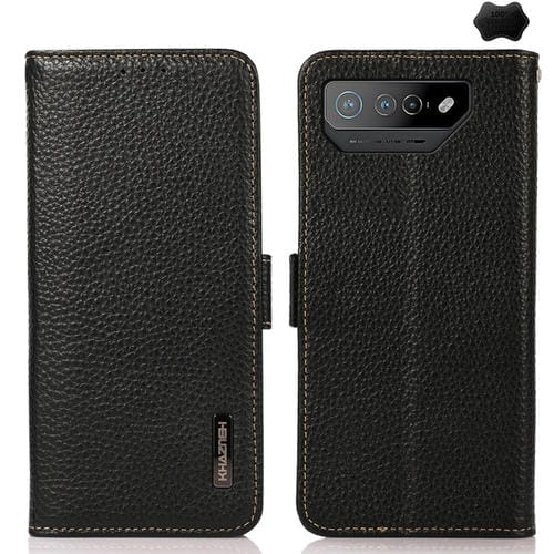 Funda para Asus Rog Phone 7 Khazneh Side-Magnetic Litchi Cuero Genuino Rfid (Negro)