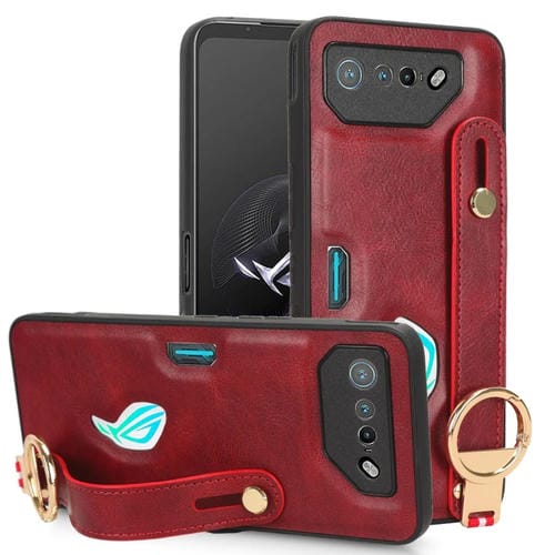 Funda Trasera de Cuero para Asus Rog Phone 7 Rog7 Muñequera para Teléfono (Rojo)