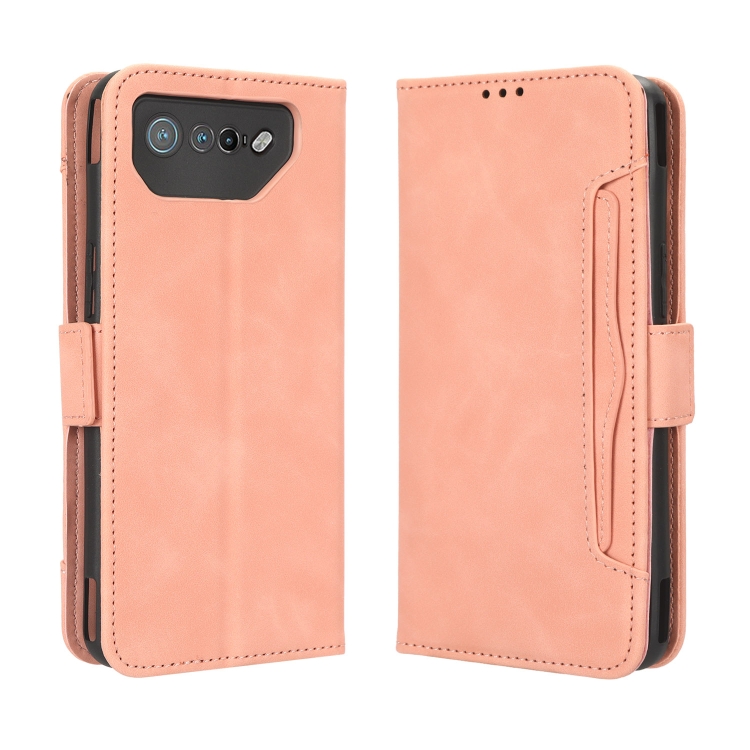 Funda de Cuero para Asus Rog Phone 7 con Textura Becerro y Ranuras para Tarjetas (Rosa)