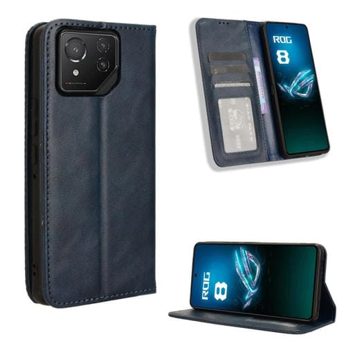 Funda para Asus Rog Phone 8/8 Pro de Cuero con Textura Retro y Hebilla Magnética (Azul)