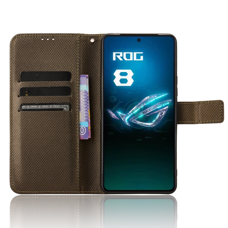 Funda de Cuero para Asus Rog Phone 8 Pro con Textura de Diamante (Marrón)