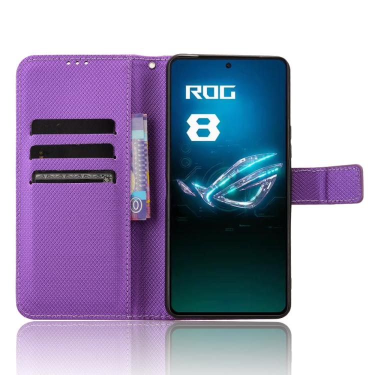 Funda de Cuero para Asus Rog Phone 8 Pro con Textura de Diamante (Púrpura)