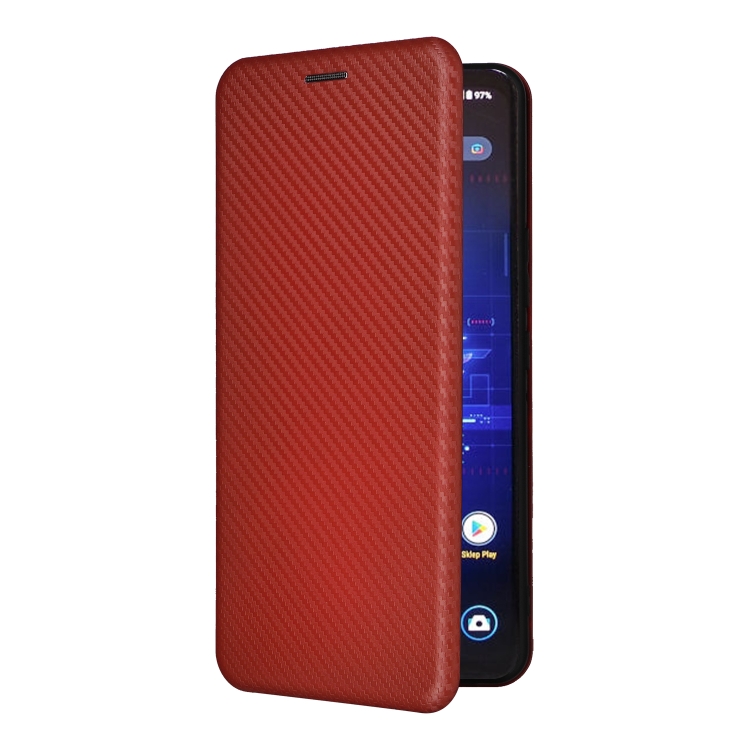 Funda de Cuero para Asus Rog Phone 8 Pro con Tapa y Textura de Fibra de Carbono (Marrón)