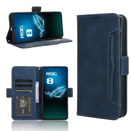 Funda de Cuero para Asus Rog Phone 8 Pro con Ranuras para Tarjetas y Textura Skin Feel Becerro (Azul)