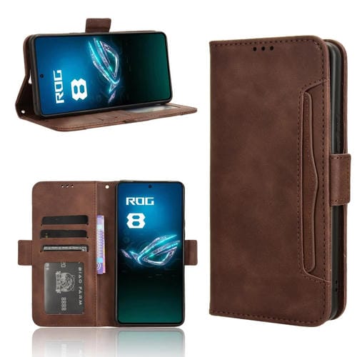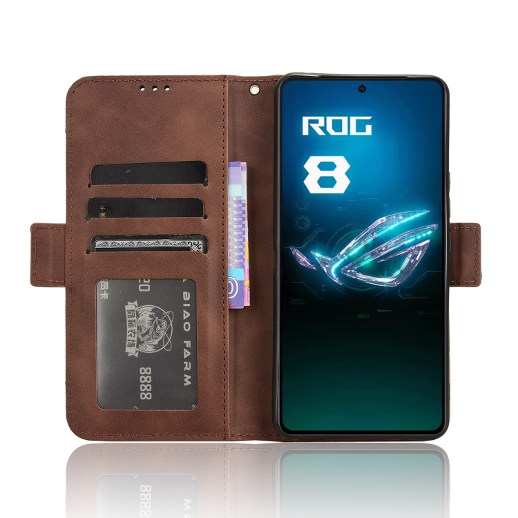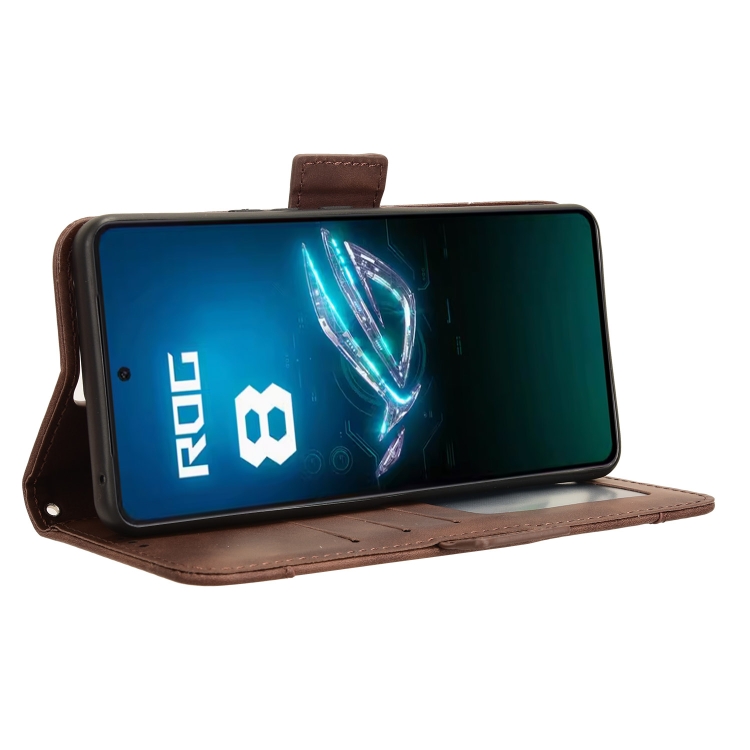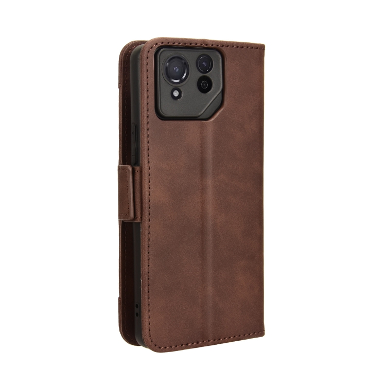 Funda de Cuero para Asus Rog Phone 8 Pro con Textura Becerro y Ranuras para Tarjetas (Marrón)