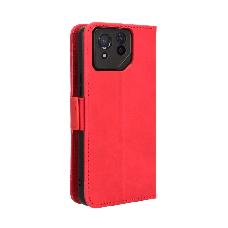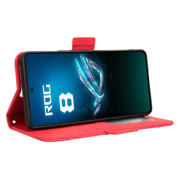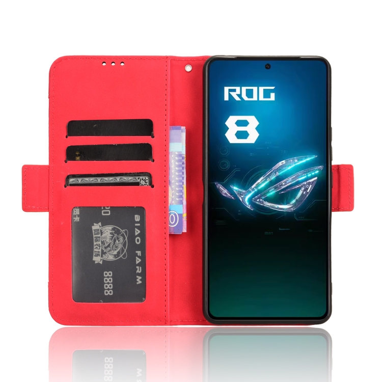 Funda de Cuero para Asus Rog Phone 8 Pro con Ranuras para Tarjetas y Textura Skin Feel Calf (Rojo)