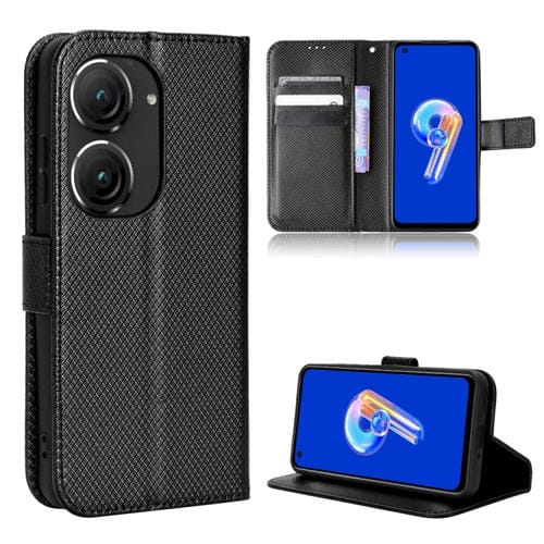 Caja de Teléfono de Cuero para Asus Zenfone 10 y 9 con Textura de Diamante (Negro)