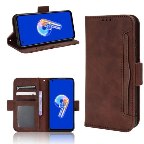 Funda de Cuero para Asus Zenfone 10 y 9 con Ranuras para Tarjetas y Textura Skin Feel (Marrón)