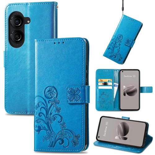 Funda de Cuero para Asus Zenfone 10 con Hebilla en Relieve y Cierre de Cuatro Hojas (Azul)