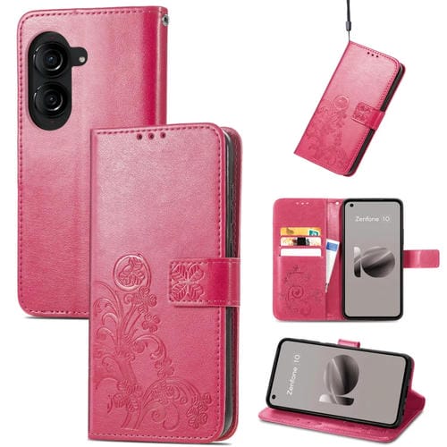 Funda de Cuero para Asus Zenfone 10 con Hebilla en Relieve y Cierre de Cuatro Hojas (Rojo)