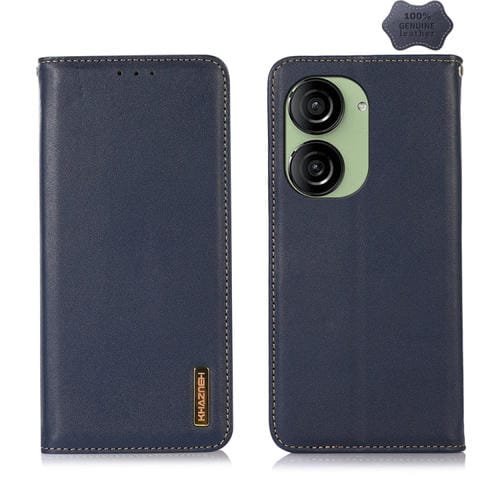 Funda de Cuero de Vaca Khazneh Nappa para Asus Zenfone 10 y Zenfone 9 (Azul)