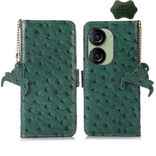 Funda de Teléfono Asus Zenfone 10 y Zenfone 9 Cuero Genuino Patrón Avestruz Rfid (Verde)