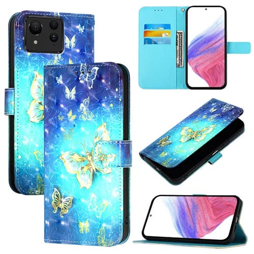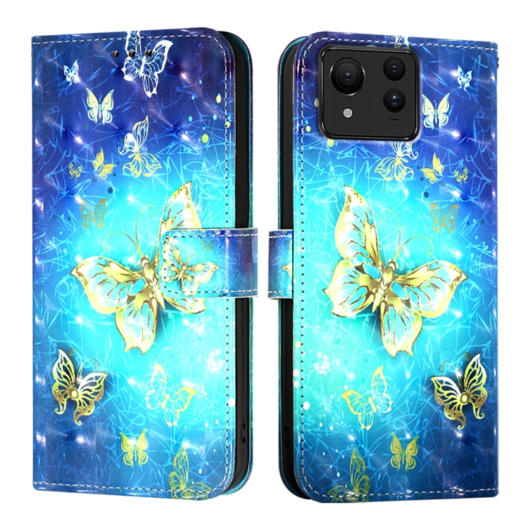 Funda para Asus Zenfone 11 Ultra de Cuero con Tapa Horizontal y Pintura 3D (Mariposa Dorada)