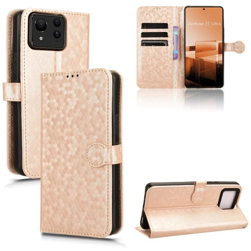Funda de Cuero Asus Zenfone 11 Ultra Honeycomb Dot Texture para Teléfono (Dorado)