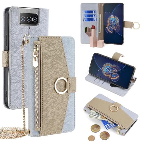 Funda para Teléfono Asus Zenfone 8 Flip ZS672KS Cuero con Textura Litchi Cruzada (Azul)