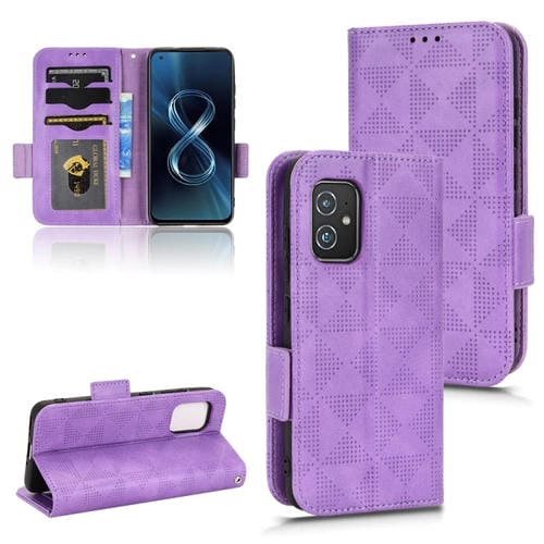 Funda de Cuero para Asus Zenfone 8 Zs590Ks con Triángulo Simétrico (Púrpura)