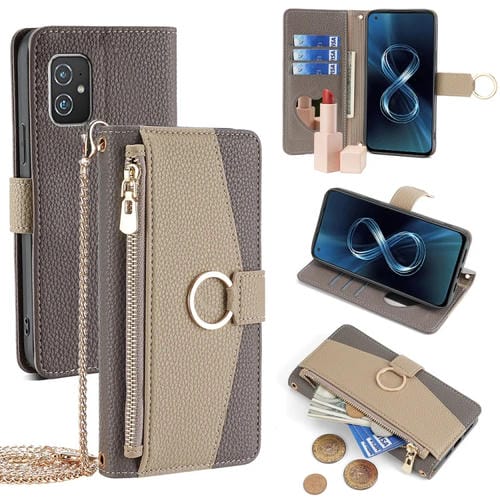 Funda para Asus Zenfone 8 Zs590Ks de Cuero con Textura Litchi Cruzada (Gris)