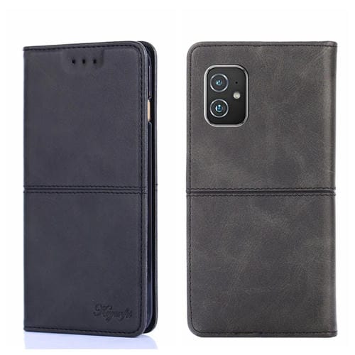 Funda Cuero Flip Horizontal Magnetal para Asus Zenfone 8 Zs590Ks Textura de Vaca (Negro)