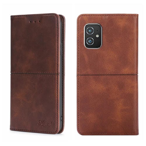 Funda Cuero para Asus Zenfone 8 ZS590KS Textura de Vaca Magnetic Flip Horizontal (Marrón Oscuro)