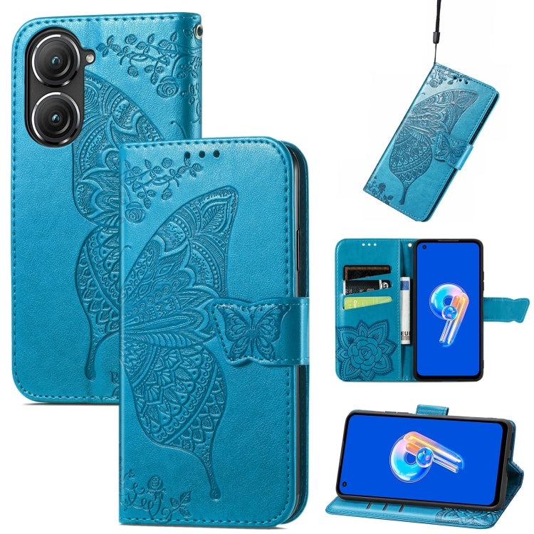 Estuche para Asus Zenfone 9 Butterfly Love Flower Cuero en Relieve (Azul)