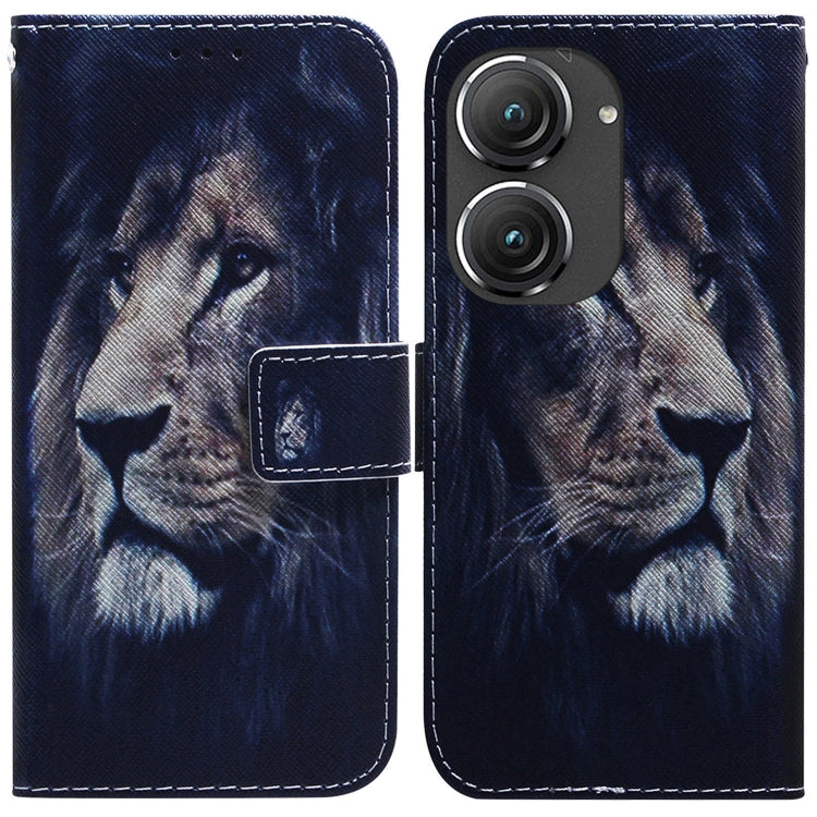 Estuche de Cuero para Asus Zenfone 9 con Dibujo Coloreado León