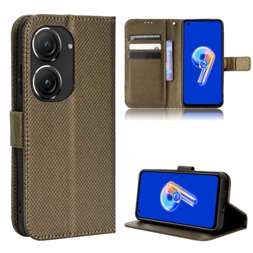 Funda de Cuero para Asus Zenfone 9 con Textura de Diamante (Marrón)