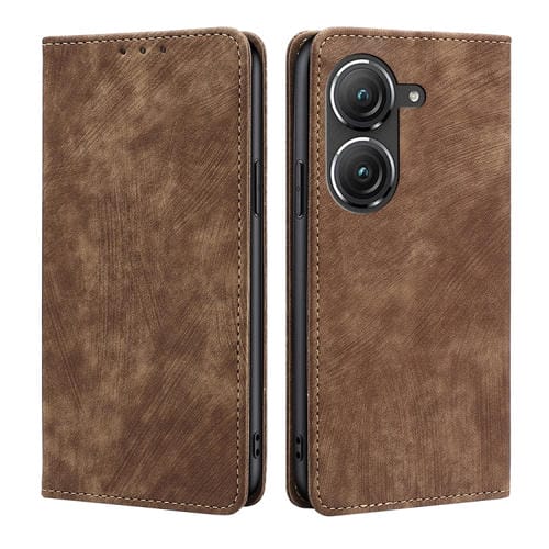 Funda de Cuero Magnética para Asus Zenfone 9 con Protección RFID y Cepillo Antirrobo (Marrón)