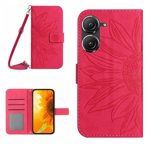 Funda Flip de Cuero para Asus Zenfone 9 con Cordón y Diseño Sun Flower (Rose Red)