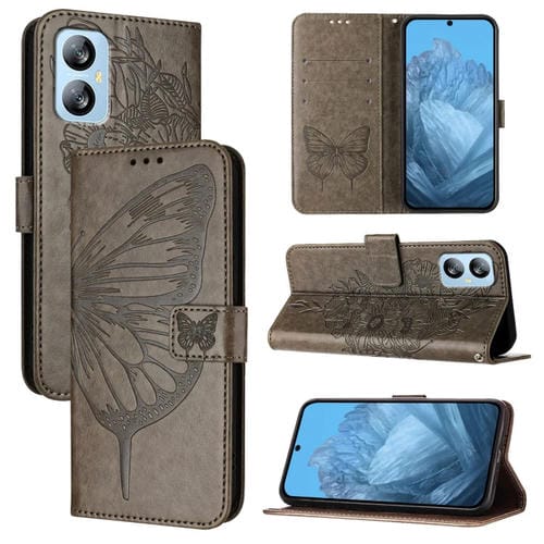 Funda de Cuero para BlackView A52 con Mariposa en Relieve (Gris)