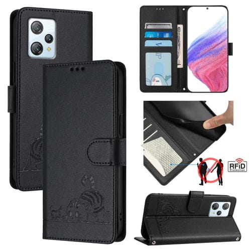 Estuche para Teléfono BlackView A53 Cat Rat de Cuero Rfid con Patrón en Relieve y Cordón (Negro)
