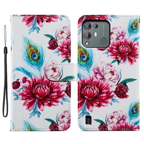 Funda de Cuero para BlackView A55 Pro con Tapa Horizontal y Patrón Flor de Pavo Real