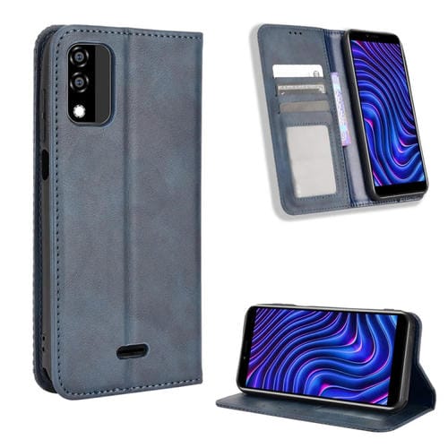 Funda de Cuero para Blu C5 Max 2022 con Hebilla Magnética y Textura Retro (Azul)