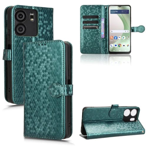 Funda para Blu View 5 de Cuero con Textura de Punto de Panal (Verde)
