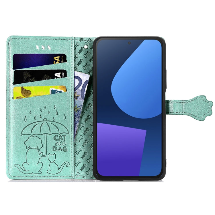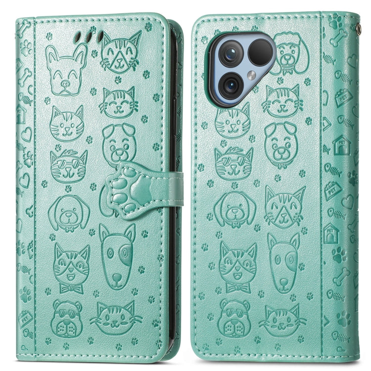 Funda de Cuero para Fairphone 5 con Relieve Gatos y Perros (Verde)