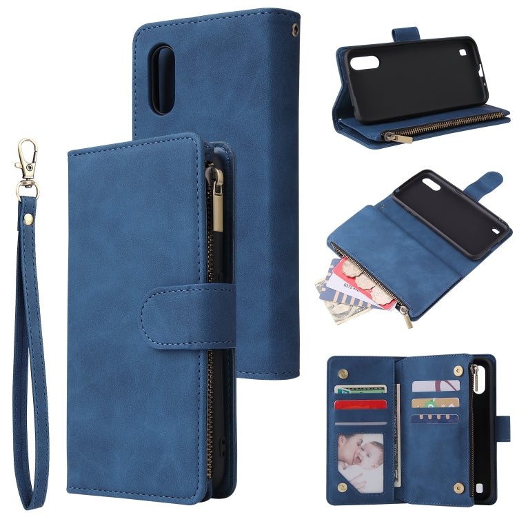 For Galaxy A01 Multifunctional Horizontal Flip Leather Case with Card Slots & Holder & Zipper Wallet & Photo Frame(Blue)