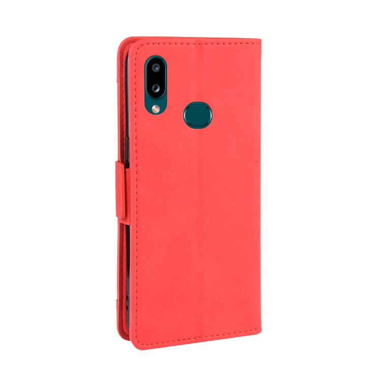 Estuche de Cuero Galaxy A10S Diseño Pantorrilla Estilo Billetera con Ranura para Tarjeta (Rojo)