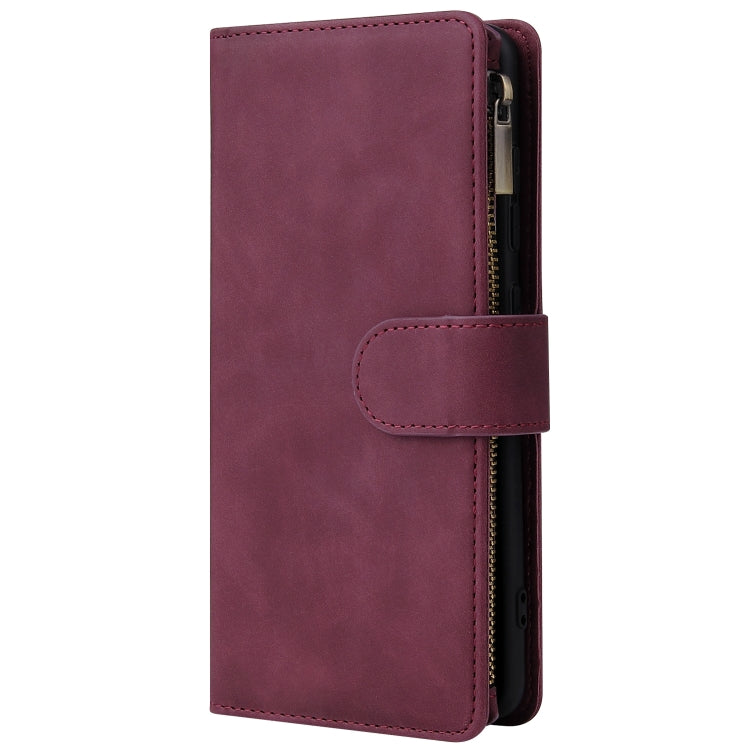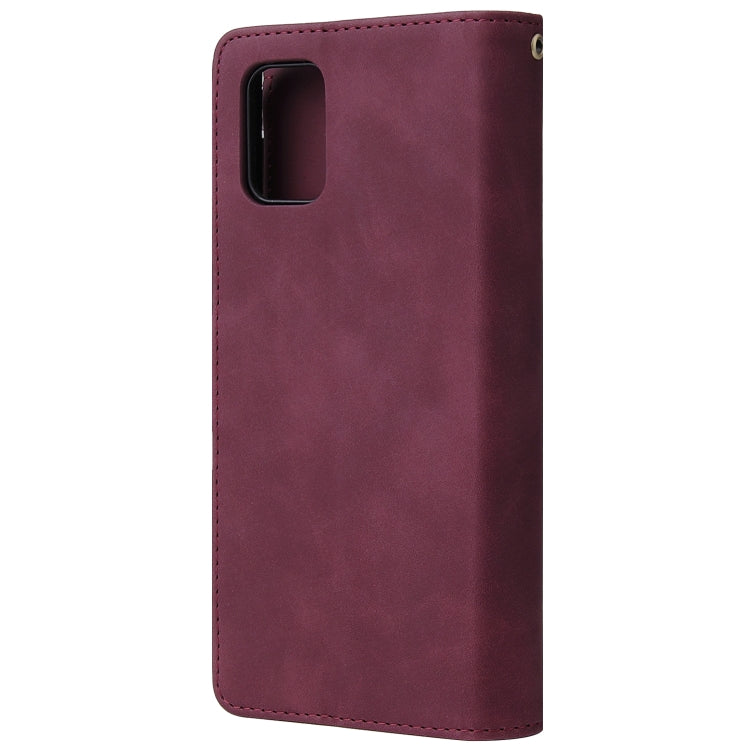 Estuche de Cuero para Galaxy A51 con Tapa Horizontal Multifuncional, Ranura para Tarjeta, Soporte, Billetera con Cremallera y Marco de Fotos (Vino Tinto)